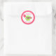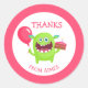 Personalize este obrigado que você cola com seu próprio texto. Design de monstro em verde e rosa com bolo de aniversário e um balão.