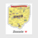Mapa de vintage do estado de Ohio com nomes de cidades e pequenas ilustrações de vintage sobre os recursos. Uma faixa no topo diz "O Estado de Buckeye". Este é de um mapa antigo publicado no início dos anos 1900.