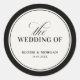 This old money inspired black and ivory wedding favor sticker features refined serif typography with an elegant script accent framed inside a bold circular border. The classic monochrome design creates a timeless and sophisticated black tie aesthetic, perfect for sealing favor boxes, gift bags, and welcome treats.