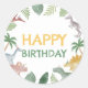 Add a personal touch to your dino party favors with this round happy birthday sticker featuring watercolor dinosaurs and palm leaves. Perfect for a boy’s first birthday.