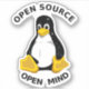 Texto mente aberto de código aberto com pinguim Tux no meio.
