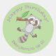 Nosso design feliz apresenta um guaxinim bebê feliz acenando de um galho de árvore. Estilo de ilustração de desenho animado para uma festa especial!