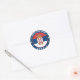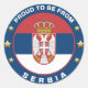 A bandeira nacional da Sérvia é infundida numa forma circular que, por si só, é decorada nas cores da bandeira. Além do texto, há estrelas decorativas atuando como mergulhadores.