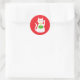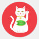 Esta maravilhosa folha de adesivos apresenta uma imagem design gráfica de um sortudo gato branco-oriental. O gato tem belos olhos de ouro e está vestindo um medalhão de ouro no colarinho ao redor do pescoço. O gato tem orelhas rosadas e sussurros. Este gatinho bonitinho está segurando um token de ouro com uma entrada de jade verde e uma mensagem no texto de ouro que diz "Boa Sorte".