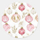 Seja feliz quando você embrulhar presentes para amigos e família no Natal. Veja o prazer que lhes traz receber suas embalagens vestidas com este belo design de ornamentos cor-de-rosa e dourados nos adesivos. O adorável design é um padrão de aquarela vintage, e é tão legal. Mostrámos este design no autocolante redondo, mas também parece bom nas outras formas, incluindo a quadrada.