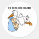 T-shirts, canecas, sacos de tote, botões e outros artigos gêmeos adoráveis com um carregando de cegonha, um cobertor azul com dois bebês sorrindo, e texto com a seguinte redação: "Os gêmeos chegaram!".