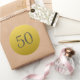 Um fundo amarelo ouro decora este adesivo de 50 anos de casamento. Use estes adesivos de aniversário de ouro para envelopes, selos de envelopes, convites, 50º aniversário de casamento, festa de aniversário, janto, sacos de presentes, favoritos para festas, decorações, etc... A design é da arte original.