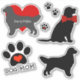Este grupo fofo de adesivos apresenta silhuetas de cães que se recuperam do ouro, estampas de pata, corações vermelhos e gravata arco, assim como as frases "mãe do cão" e "amor é ouro".