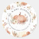 Etiqueta de endereço de devolução de floral outonal pintada a aquarela com abóboras, folhas de outono e cabaças, Adesivo Redondo Clássico. Etiqueta de endereço de devolução elegante que pode servir como selo de envelope, adicionando um toque final elegante à apresentação do seu convite. Tipografia de letra manuscrita juntamente com o nome, endereço e monograma do remetente sobre uma moldura circular simples e moderna. Cores quentes de outono de laranja queimado, terracota, marrom, verde suave e marfim. Pintado e desenhado graficamente pela artista e designer licenciada internacionalmente, Audrey Jeanne Roberts, direitos autorais reservados.