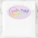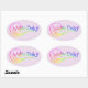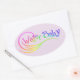 Versão arco-íris do logotipo Água Bebê em um adesivo oval.