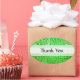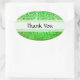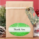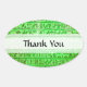 Um conjunto de adesivos ovais verdes "Obrigado" com hieróglifos antigos gravados na pedra. As palavras "Obrigado" são personalizáveis!