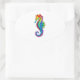 Articulação artificial, brilhante, arco-íris, cavalo de mar poligonal sobre fundo branco. Tatuagem brilhante.