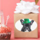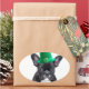Adesivo Oval Belo Bulldog Francês com Rua de Chapéu. Dia de Pat