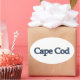 Este logotipo de texto celebra Cape Cod Massachusetts. Cape Cod é famoso por suas praias, faróis, pesca, mariscos, frutos do mar, cores de queda e outras atrações.