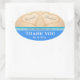 Adesivo Oval Casamento de Praia 2 Corações Areia Obrigado