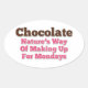 Chocolate, o fazer da natureza para as segundas-feiras. Um doce de chocolate bonito, engraçado e humorístico que diz design em letra de texto rosa e castanho.