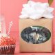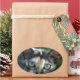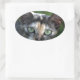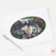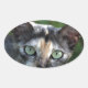 Adesivo Oval Cinza de Gato Branco Castanho com Olhos Verdes