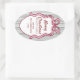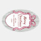 Adesivo Oval Classic Dark Green Stripes & Pink Bow Christmas