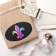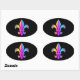 Design cor-de-rosa, azul e dourada sobre fundo preto.