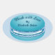 Personalize seus produtos cozidos com este bonito gráfico de biscoito macaron azul-lacrimogêneo. Personalize facilmente o texto neste adesivo oval. Este design coordena com os meus biscoitos de pop art colorido itens de padrão de macarões coloridos.