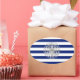 Um cromo prateado como design de barco de pesca em uma decoração de listras azuis marinho. Um presente náutico moderno. Use o link "Perguntar a este Designer" para entrar em contato conosco com suas solicitações especiais de design ou para obter assistência com qualquer das suas necessidades de personalização.