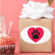 Adesivo Oval Coração Vermelho Com Impressão De Pata De Cão