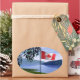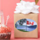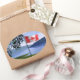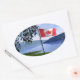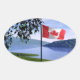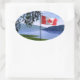 Uma cena canadense de 3d de um lago e colinas verdes com uma árvore de maple e a bandeira canadense.