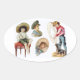Adesivo Oval Crianças Victorianas charmosas e Colagem de Cães