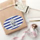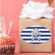 Um cromo prateado como design pirata em uma decoração de listras azuis marinho. Um presente náutico moderno. Use o link "Mensagem" para entrar em contato conosco com suas solicitações especiais de design ou para obter assistência com qualquer necessidade do seu projeto de personalização.