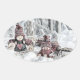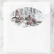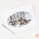 Adesivo Oval Desenho Vintage de Gnomos na Neve
