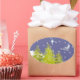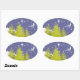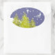 Adesivo Oval Feliz Natal Pines Lua e Estrelas