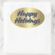 Adesivo Oval Feriados felizes, brilho azul no Dourado