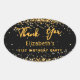 Adesivo Oval Festa de aniversário preto, nome de ouro Obrigado
