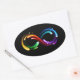 Symbol of infinity is artistically painted with fast moving, bright, luminous, rainbow colored comets with long flexible tails on black background. Rainbow infinity.