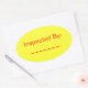 Estas etiquetas de inspeção ovais do produto têm um fundo amarelo com "Inspeções por:". Estes adesivos têm cor para uma elevada visibilidade. Apenas descasque e cola. Estes rótulos são perfeitos para grandes e pequenas empresas. Este design pode ser adquirido como está ou você pode usá-lo como um modelo para fazer seu próprio design único. São oferecidas outras etiquetas e designs de envio/aviso.