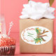 Adesivo Oval Laranjas Aquarelas Xadrez Arco Monograma de Natal