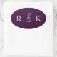 adesivo de casamento personalizado com iniciais elegantes bege claro em um fundo roxo escuro rico. Perfeito para casais, personalize agora para adicionar as iniciais do casal.