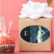 ADESIVO OVAL ROSAS VERMELHAS À NOITE, MONOGRAMA DE FASHION DE B