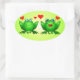 Adesivo Oval Sapos de Cartoons Verdes Corações de Amor Vermelho