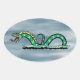 Uma serpente de mar verde escreve sobre as ondas do oceano nesta ilustração original de Richard H. Fay.