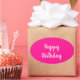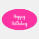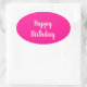 Adesivo Oval Simple Happy Birthday Hot Pink