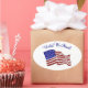 "Mostre seu orgulho pelos EUA com este "United We Stand!" Design de sinalizador. Esta design apresenta uma bandeira ondulando os Estados Unidos e as palavras "Unidos, somos!" em texto azul."