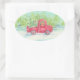Adesivo Oval Vinhetas de Natal de Caminhão Vermelho