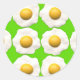 Design de ovos fritos, bonitos e quiridos, de cor clara, no estilo de Pop de Arte, em um padrão de fundo de verde limão. Motivo de comida adequado para um presente de Páscoa ou apenas para algo um pouco fora da parede. Apresentando as cores brilhantes do amarelo canário, limão / grama verde e branco.