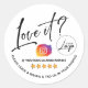 Instagram Personalizado Instagram Review Classic Round Sticker moderno, moderno e moderno, o Design apresenta a alça do Instagram, o logótipo e a solicitação de revisão.