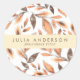 O adesivo clássico redondo moderno, profissional e quic moderno Rosa botânico Dourado "Folhas Botânicas" apresenta o nome do cheio e a carreira num texto profissional dentro de uma área roxa em negrito, adequado para qualquer profissão, diretor artístico, redator de arte, redator de copiadora, desenhos de interiores, advogado, professor, dentista, médicos, escritor, maquiador, cabeleireiro, etc.