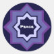 Este adesivo apresenta um padrão abstrato de oito estrelas laterais agrupadas em cores de mauve, roxo e branco sobre fundo azul-da-noite. O texto diz simplesmente: Paz. Ele pode ser personalizado ou removido.