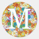 Padrão Floral Colorido Emparelhado com e apresentando um Autocolante Personalizado de Trendy Funky Grande Monograma. flor selvagem, floral chic boho bohemiano, floral bohemiano folk art boho bohemian, floral botânico folclórico, padrão floral folclórico elegante, padrão botânico revivente do patrimônio, padrão botânico do milênio rococo floral, colorido padrão botânico, cinza do jardim das flores, nome personalizado cor-de-rosa azul-laranja vermelho,