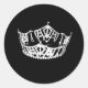 Um adesivo redondo mostrado a preto com um impressão litoral de uma coroa de rainhas do concurso. Personalize este item ou comprar como está.