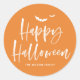 Palavra de Bruxelas Feliz Halloween | Laranja Obrigado Clássico. Mande saudações de Halloween para a família e amigos com este adesivo personalizável. Ele contém a inscrição do pincel com a ilustração dos morcegos. Este adesivo divertido e moderno do Dia das Bruxas é perfeito para convites, cartões e presentes e favores de festas. Personalize adicionando seus próprios detalhes.